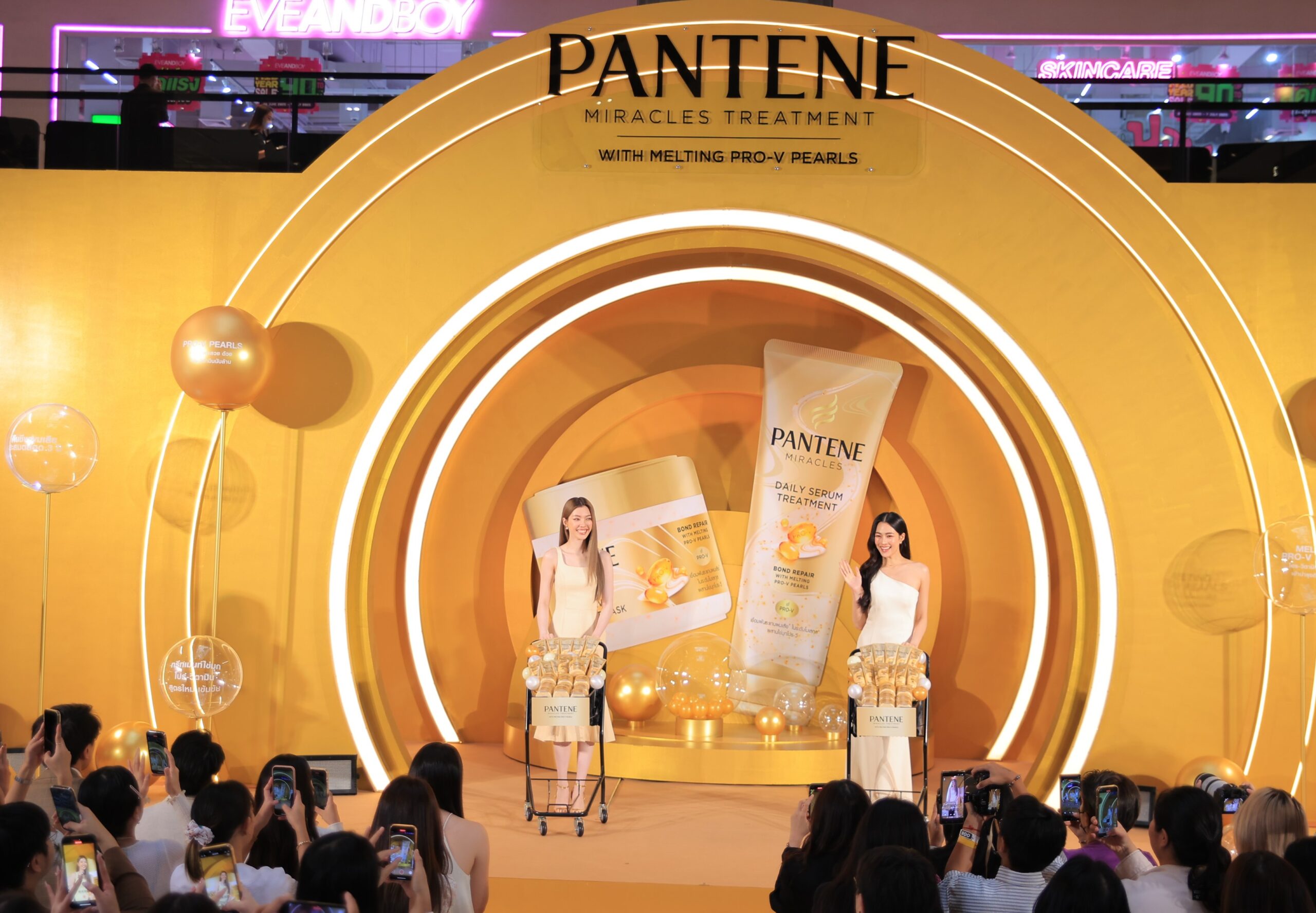 เมื่อความรัก… เริ่มต้นจากผมสวย แพนทีน (PANTENE) ผู้นำเทรนด์แบรนด์ผลิตภัณฑ์ดูแลเส้นผมระดับโลก สร้างปรากฏการณ์ใหม่ที่พลิกโฉมโลกแห่งการดูแลเส้นผม จัดงาน “Pantene Miracles Treatment Grand Opening Launch” เปิดตัว PANTENE MIRACLES TREATMENT WITH MELTING PRO-V PEARLS นวัตกรรมทรีทเม้นท์สูตรใหม่ที่ดีที่สุดจากแพนทีน หรือ #ทรีทเม้นท์ไข่มุก ครั้งแรกในไทยกับโมเลกุลอาหารผมกว่าล้านโมเลกุล ในรูปแบบ “ไข่มุกโปร-วิตามิน (ไข่มุกโปร-วี)” ที่มองเห็นได้จริงด้วยตาเปล่า และสามารถละลายไปกับเนื้อทรีทเม้นท์ทันทีเมื่อสัมผัสน้ำ พร้อมปลดปล่อยพลังฟื้นบำรุงสู่เส้นผมทันทีตั้งแต่ครั้งแรกที่ใช้ โดยได้รับเกียรติจาก หลิงหลิง – ศิริลักษณ์ คอง และ ออม – กรณ์นภัส เศรษฐรัตนพงศ์ สองสาวพรีเซนเตอร์คู่สุดฮอตของแพนทีน ร่วมแชร์โมเมนต์ตกหลุมรักและแบ่งปันความประทับใจกับ “ปังฏิหารย์ผมสวย” จากการใช้ทรีทเม้นท์สูตรใหม่ ณ Forum, GF, Gaysorn Amarin, Gaysorn Village