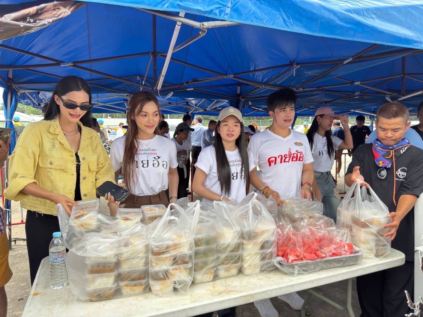 อย่าง อุ๋งอิ๋ง รัตนาภรณ์ และ อ๋อมแอ๋ม ละมัยลงพื้นที่จังหวัดบุรีรัมย์ ช่วยเหลือทางด้าน อาหาร เครื่องดื่ม ข้าวของเครื่องใช้ที่จำเป็น เพื่อให้กำลังใจและแสดงความห่วงใยพ่อแม่พี่น้องที่ได้รับผลกระทบจากสถานการณ์การปะทะบริเวณชายแดนไทย-กัมพูชา โดยไปที่ จังหวัดบุรีรัมย์ เป็นที่แรกเมื่อวานนี้ และวันนี้เดินทางไปให้กำลังใจกันต่อ ณ จังหวัดศรีสะเกษ