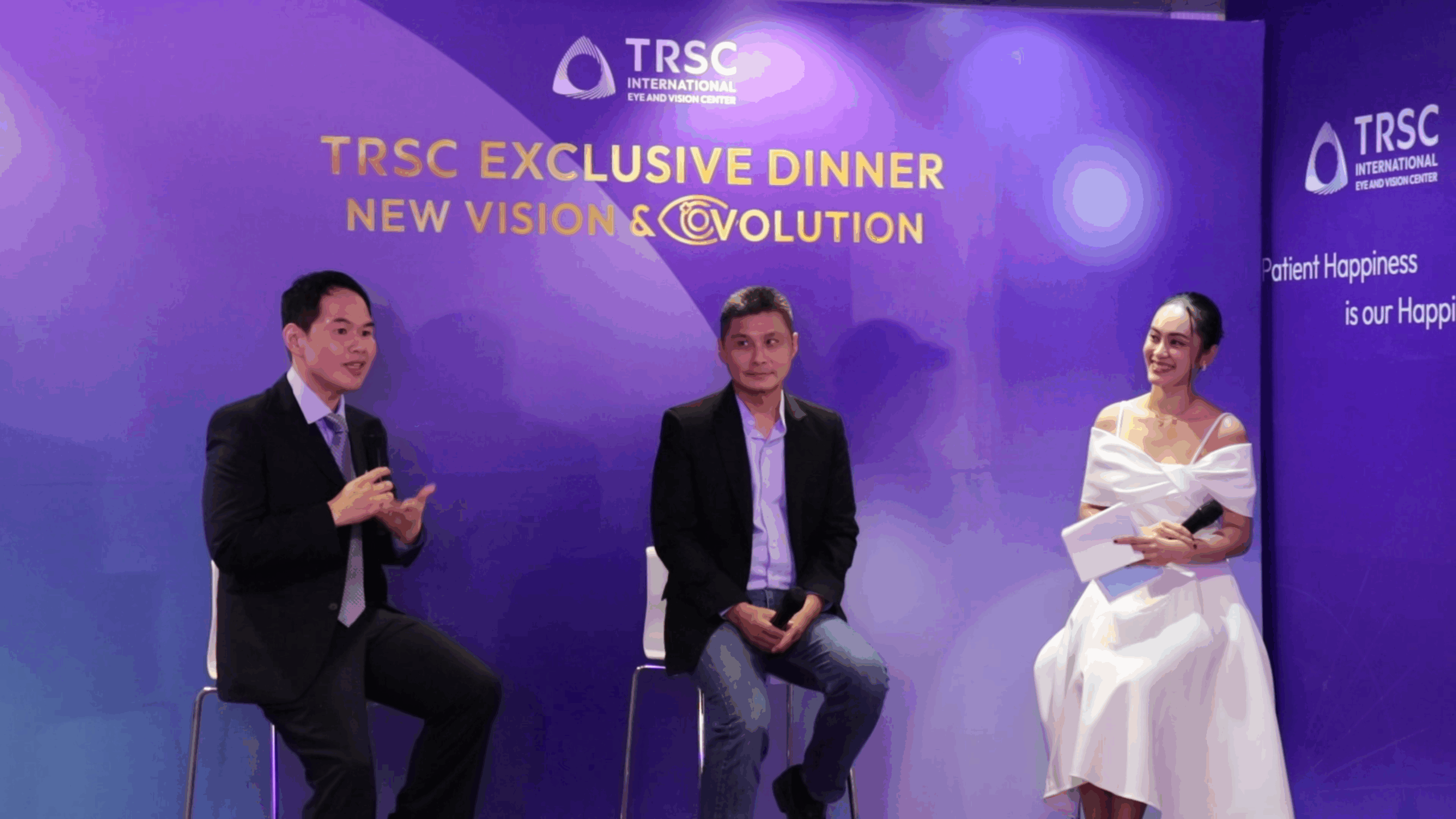 เพื่อเฉลิมฉลองก้าวสำคัญครั้งนี้ TRSC ได้จัดงาน “TRSC Exclusive Dinner: New Vision and EYEvolution” ณ สาขาพระราม 4 โดยมีแขกคนสำคัญจากหลากหลายวงการเข้าร่วม ทั้งคนไข้เก่าที่ให้ความไว้วางใจ TRSC มาต่อเนื่องยาวนานกว่า 20 ปี ไปจนถึงกลุ่มคนไข้ใหม่ที่มีวิถีชีวิตแตกต่างกัน ไม่ว่าจะเป็น CEO เซเลบริตี้ นักธุรกิจ คนบันเทิง และผู้ทรงอิทธิพลในโลกออนไลน์ อาทิ คุณอัญรัตน์ พรประกฤต, คุณตัน-คุณอิงภาสกรนที, คุณพล ตัณฑเสถียร, คุณปอย ตรีชฎา, คุณมิ้นต์ ชาลิดา, คุณพีท ทองเจือ, คุณอะตอม ชนกันต์, คุณจีน่า ญีนา, คุณวัจน์นัย-คุณปณิธิ สนิทวงศ์ ณ อยุธยา ฯลฯ โดยทุกคนต่างร่วมแบ่งปันประสบการณ์จริงจากการเข้ารับบริการที่ TRSC และพูดถึง “ความเปลี่ยนแปลงที่มองเห็นได้” ทั้งในด้านสุขภาพกาย สุขภาพใจ และการใช้ชีวิต