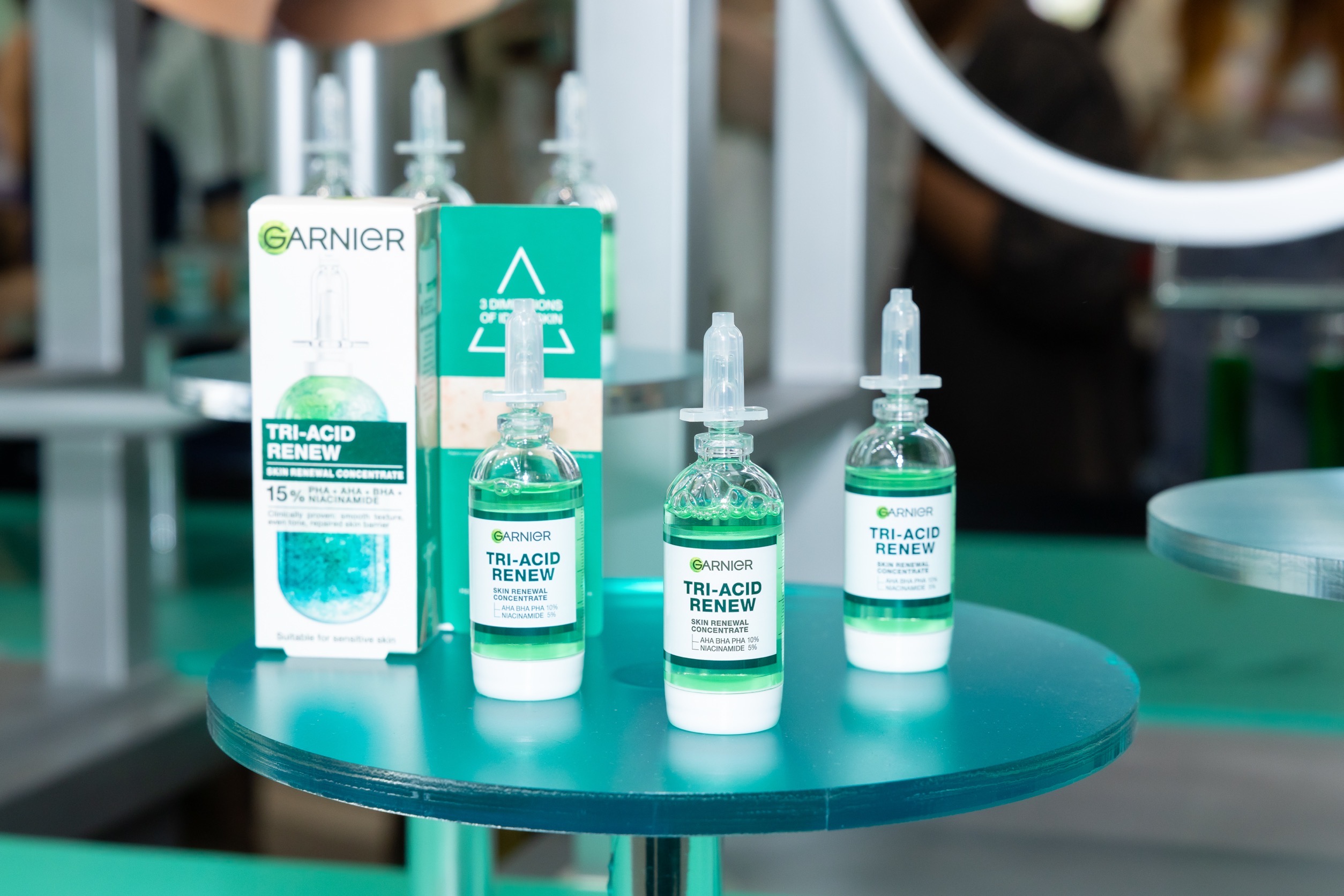 ครั้งนี้ Garnier กลับมาพร้อมเทคโนโลยีเพื่อผิวไบรท์สูตรใหม่ Garnier Tri-Acid Renew Skin Renewal Concentrate (ไตร-แอซิด รีนิว สกิน รีนิววัล คอนเซนเทรต) หรือ เซรั่มไตรแอซิด ที่มีประสิทธิภาพเสมือน #หยดผลัดผิว ทำให้ผิวดูมีสุขภาพดีขึ้น ช่วยผลัดเซลล์ผิว และฟื้นฟูเกราะป้องกันผิวได้ใน 4 ชั่วโมง[1] เป็นไอเทมเพื่อผิวที่ดีจากธรรมชาติ ที่ผสานพลังจาก Green Acids สารสกัดจากธรรมชาติ อัดแน่นด้วย PHA, AHA, BHA และ Niacinamide ช่วยให้ผิวเรียบเนียน สีผิวสม่ำเสมอ พร้อมเผยผิวใหม่ที่ดูสดใสขึ้นได้[2] อย่างอ่อนโยนและไม่ก่อให้เกิดอาการระคายเคือง