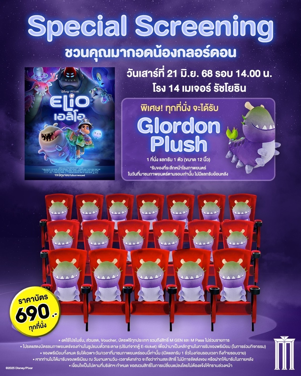 พลาดไม่ได้กับรอบพิเศษ ชวนกอดน้องลอร์ดอนดู “Disney and Pixar’s Elio เอลิโอ ” ในวันเสาร์ที่ 21 มิถุนายน2568 รอบ 14.00 น. ที่การควบคุมเมเจอร์ รัชโยธิน และวันอาทิตย์ที่ 22 มิถุนายน 2568 รอบ 15.00 น. ที่ SF World Cinema เซ็นทรัลเวิลด์ โดยทุกที่นั่งจะได้รับตุ๊กตานิ้วกลอร์ดอนขนาด 12 กลับบ้าน ผู้กำกับ 1 คนในราคาบัตร 690 บาทต่อที่นั่ง