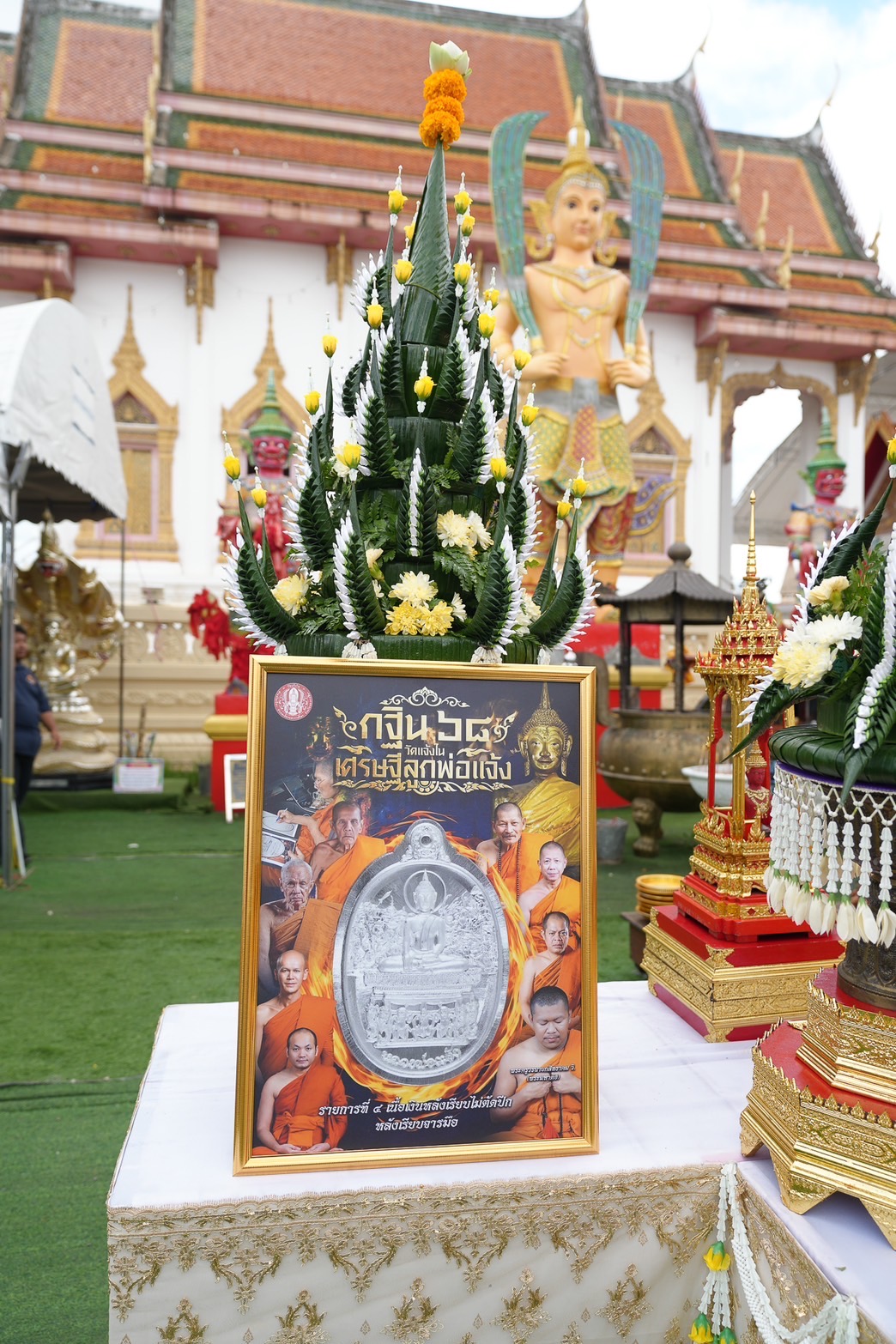 โดยครั้งนี้ได้อัญเชิญพระเกจิทั่วฟ้าเมืองไทย อาทิ ลป.มหาศิลา สิริจนฺโท, พระมหาต่อ, พระราชาคณะชั้นต่าง ๆ พระเถราจารย์ เกจิอาจารย์ที่มีชื่อเสียงในปัจจุบันมากมายมาร่วมปลุกเสก ฤกษ์ดีพิธีเริ่มในเวลา 13.39 น. ความปังของพิธีในครั้งนี้ก็คือ การรวบรวมเอามวลสารทั้งแผ่นชนวนมวลสารพ่อแม่ครูบาอาจารย์มากมาย แผ่นชนวนมวลสารหมื่นยันต์พันพระคาถา ผานไถเก่า แร่เหล็กเปียกดิบ ทองล้นเบ้าหล่อพระพุทธรูปศักดิ์สิทธิมากมาย ตะปูสังฆวานร แผ่นสังกะสีหลังคาโบสถ์เก่า และอื่น ๆ อีกมากมาย โดยนำมาเป็นมวลสารเข้าเตาหลอมเพื่อสร้างเหรียญกฐิน 2568 เหรียญหลวงพ่อแจ้งรุ่นแรก รุ่นเศรษฐีลูกพ่อแจ้ง และตะกรุดลูกปืน หลวงพ่อแจ้ง รุ่นแรก โดยพิธีครั้งนี้ไม่ว่าจะเหล่าดารา-นักแสดง เซียนพระ คนดังต่างๆ ทุกคนตั้งใจร่วมพิธีกันทุกขั้นตอน ตั้งแต่การสวดมนต์ การปักธูปที่โต๊ะหมู่บูชา รวมไปถึงการนำมวลสารมาเข้าเตาหลอมรวม และเป็นครั้งแรกของวัดและที่โคราชสำหรับการปั๊มเหรียญนำฤกษ์ที่วัดแจ้งใน โดยในพิธีรับรู้ได้ถึงความขลังจนขนลุกกันเลยทีเดียว รวมถึงพลังศรัทธาจากญาติโยมที่ศรัทธาบารมีหลวงพ่อแจ้งมารวมตัวกันที่วัดแจ้งในโคราช หลายร้อยหลายพันคน