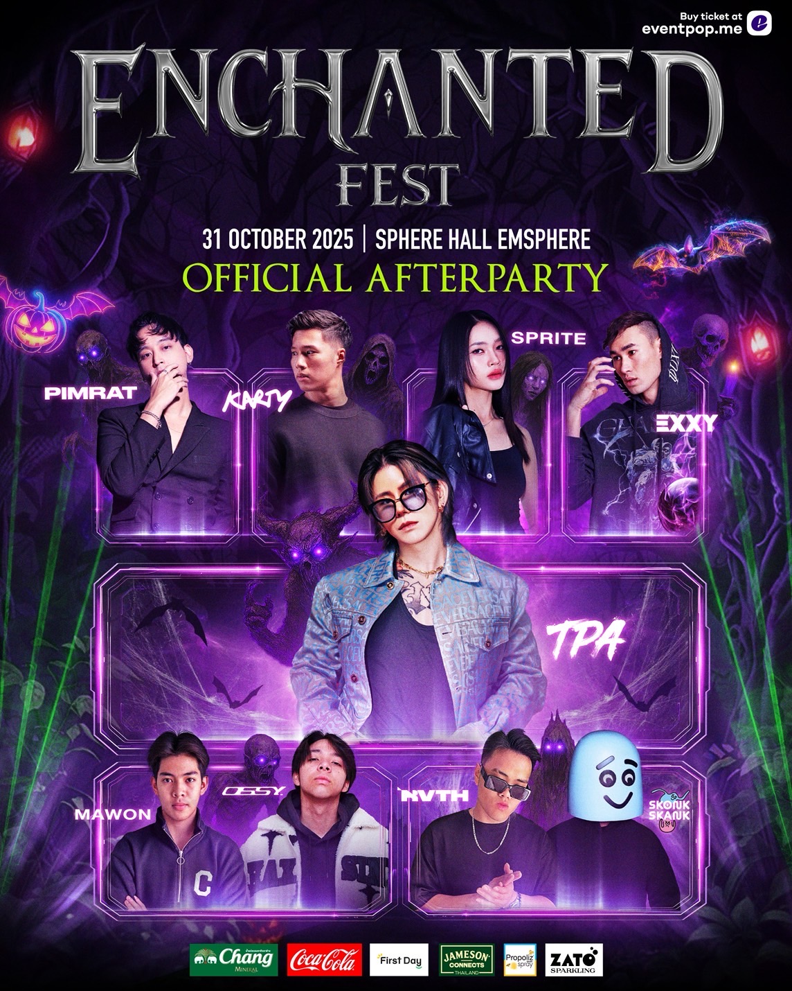 และเป็นกระแสฮือฮาอีกครั้ง เมื่อ ENCHANTED FEST 2025 เปิดเซอร์ไพรส์ เอาใจสายปาร์ตี้ในวันเดียวกัน กับเวที “ENCHANTED FEST 2025 OFFICIAL AFTERPARTY” ที่จัดขึ้น ณ SPHERE HALL at EMSPHERE มาพร้อมกับเวทีแบบ 360 ํ Stage เสิร์ฟความมันส์ได้ครบทุกมุม กับไลน์อัพ DJ Set ที่จัดมาแบบเน้นๆ ให้ชาว ENCHANTER ระเบิดความมันส์แบบไม่ยั้ง แดนซ์ให้ฟลอร์กระจาย นำทัพความมันส์โดย TPA ดีเจโปรดิวเซอร์สุดฮอตจากเกาหลีใต้ ที่ขึ้นเวทีเฟสติวัลระดับโลกมาแล้วนับไม่ถ้วน พร้อมด้วย DJ.PIMRAT ดีเจหนุ่มสุดฮอตที่ตอนนี้ สายปาร์ตี้แทบไม่มีใครไม่รู้จัก, DJ.KARTY หรือ KARTYPARTYY ดีเจโปรดิวเซอร์มากฝีมือที่มีงานแสดงทั้งในและต่างประเทศอย่างต่อเนื่อง, DJ.SPRITE ดีเจสาวสุดเซ็กซี่ จะมาสปินบีทขยี้ใจทุกคน, DJ.EXXY ดีเจหนุ่มลูกครึ่งดีกรีผู้บริหารใหญ่แห่ง ENCHANTED VIP , DJ Mawon x DJ OSSY และ DJ RVTH x MC SKONK SKANK เรียกได้ว่ามางานเดียว เก็บครบทุกทาร์เก็ต