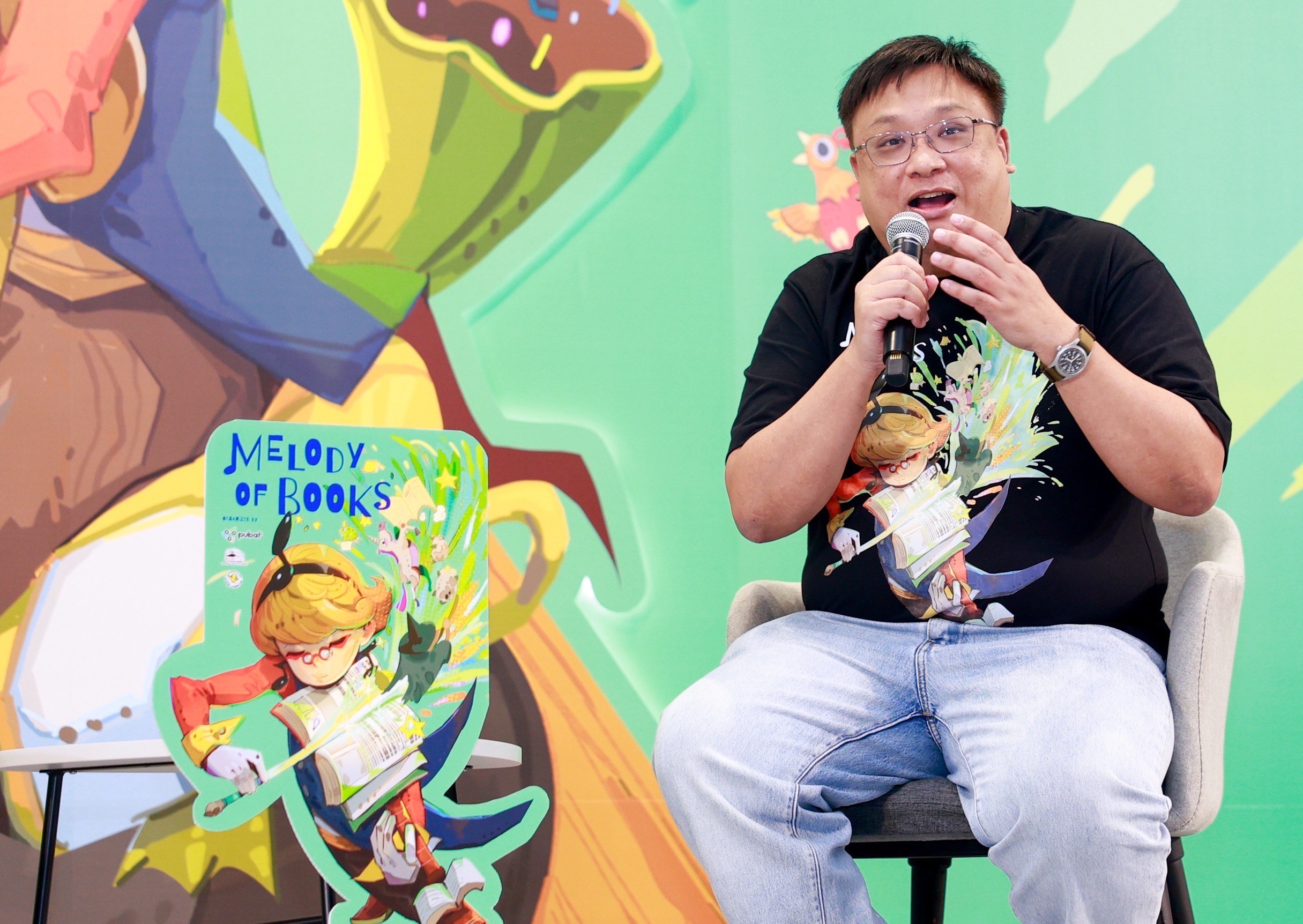 “สำหรับแนวคิด “Melody of Books – อ่านหรือยัง ฟังหรือเปล่า” มุ่งนำเสนอรูปแบบใหม่ของการเข้าถึงหนังสือ โดยผสานโลกแห่งตัวอักษรเข้ากับเสียงดนตรีและสื่อสร้างสรรค์อื่น ๆ เพื่อขยายประสบการณ์ของการอ่านในมิติที่หลากหลายและร่วมสมัย สามารถเลือกอ่านหนังสือ หรือจะฟังเรื่องราวจากหนังสือผ่าน พอดแคสต์ (เสียงที่เผยแพร่ผ่านทาง Platform ออนไลน์) หรือ ออดิโอบุ๊ก สะท้อนให้เห็นว่าหนังสือในปัจจุบันได้ถูกแปลงไปเป็นรูปแบบอื่น ๆ ด้วย เช่น หนังสือเสียง นี่คือความพยายามที่จะทำให้การเข้าถึงสื่อและการอ่านหนังสือให้กว้างมากขึ้น ไม่ใช่เฉพาะแค่หนังสือในแบบรูปเล่ม ซึ่งทุกกิจกรรมที่จัดขึ้นในงานนี้ล้วนมีรากฐานมาจากการอ่าน โดยมีเป้าหมายเพื่อต้องการขยายฐานนักอ่านให้กว้างยิ่งขึ้น”