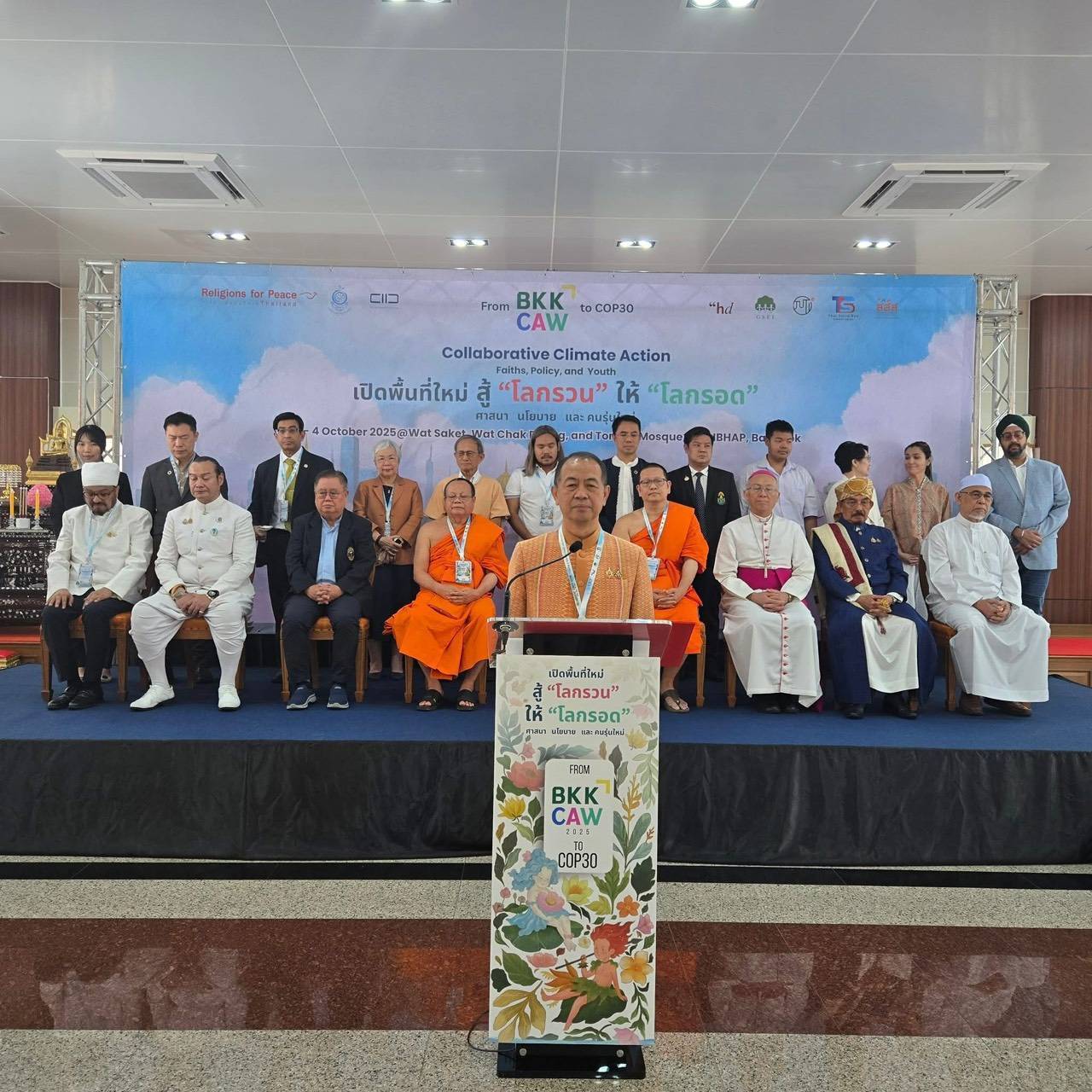กิจกรรม “เปิดพื้นที่ใหม่ สู้โลกรวน ให้โลกรอด: ศาสนา นโยบาย และคนรุ่นใหม่ From BKKCAW 25 to COP30” จัดขึ้นในวันที่ 2-4 ตุลาคม 2568 เกิดจากความร่วมมือของ ศาสนาเพื่อสันติภาพ ประเทศไทย, มูลนิธิสถาบันการจัดการวิถีพุทธเพื่อสุขและสันติ (มูลนิธิ สกพ.), สถาบันธรรมรัฐเพื่อการพัฒนาสังคมและสิ่งแวดล้อม,
